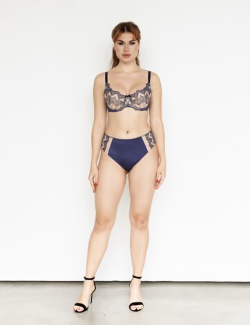De zachte Gina beha, gemaakt met donkerblauwe borduursel, oogt ongelooflijk elegant en sensueel. Het borduurwerk is versierd met een fluwelen bloemmotief, wat diepte en een luxueuze touch aan het ontwerp toevoegt. Het materiaal is zacht en teder, waardoor het ideaal is voor zelfs de gevoeligste huid en de hele dag comfort biedt. De achterkant van…