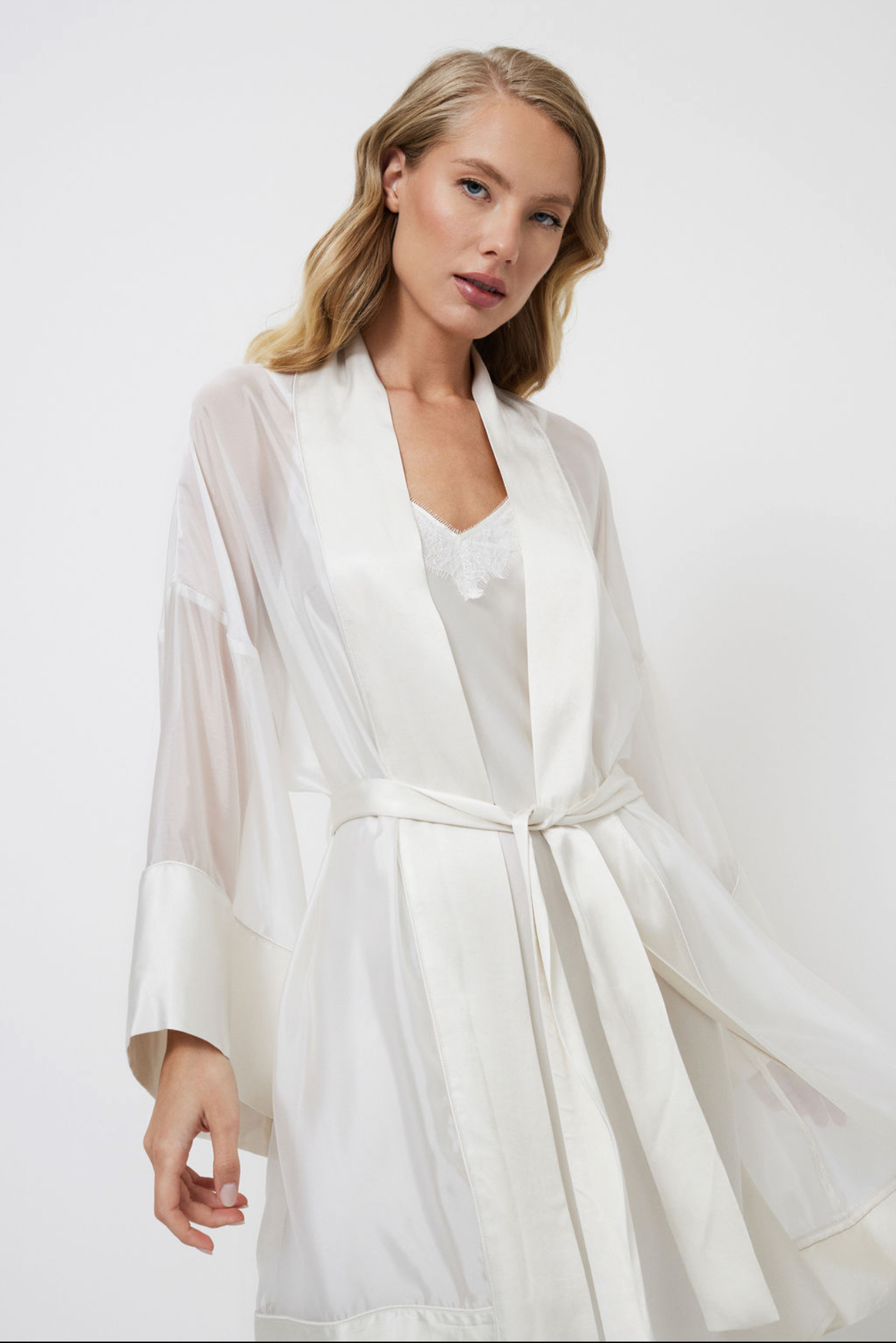 Uitgevoerd in een effen ecru tint, belichaamt deze badjas tijdloze schoonheid die op u wacht.