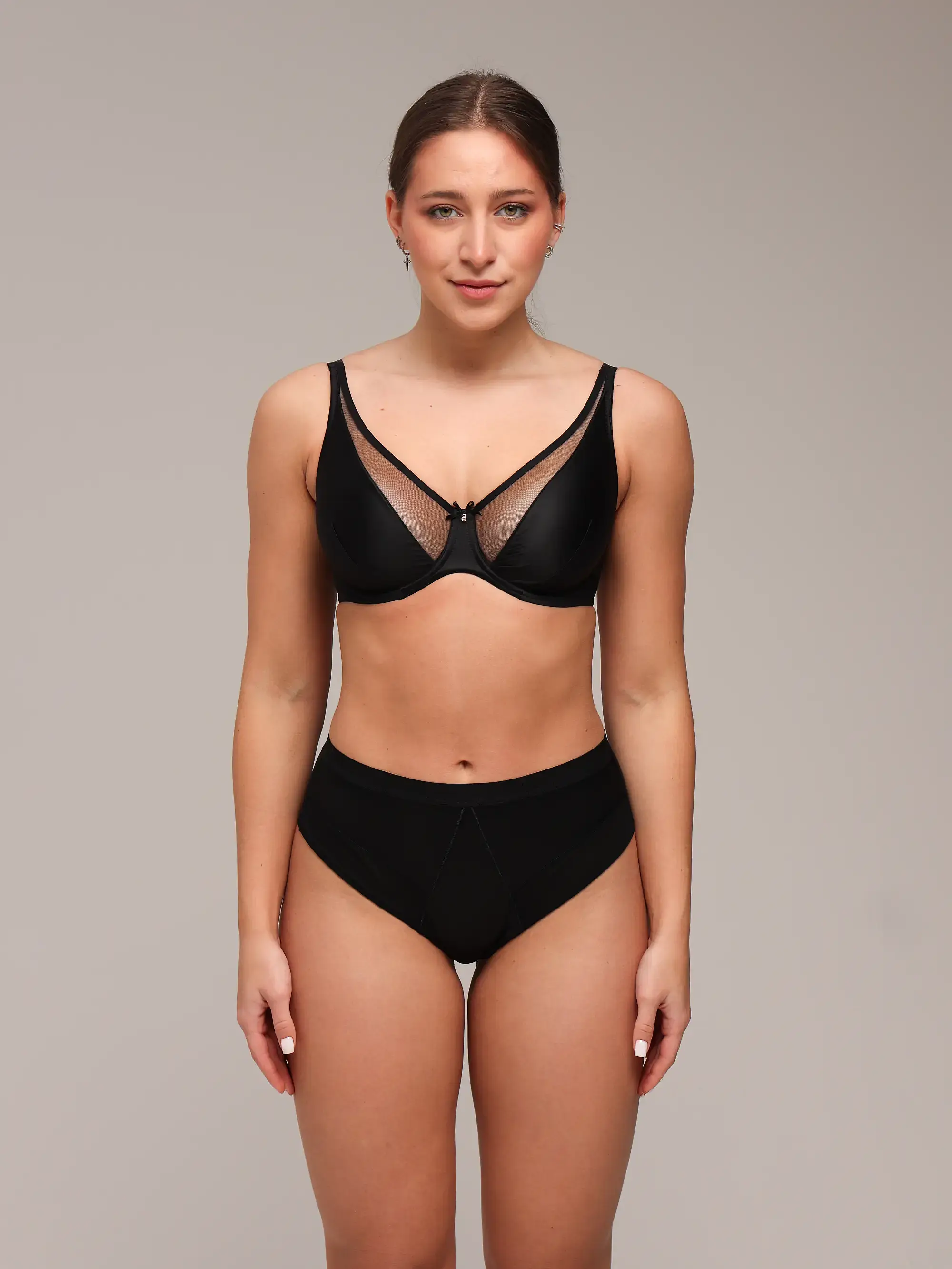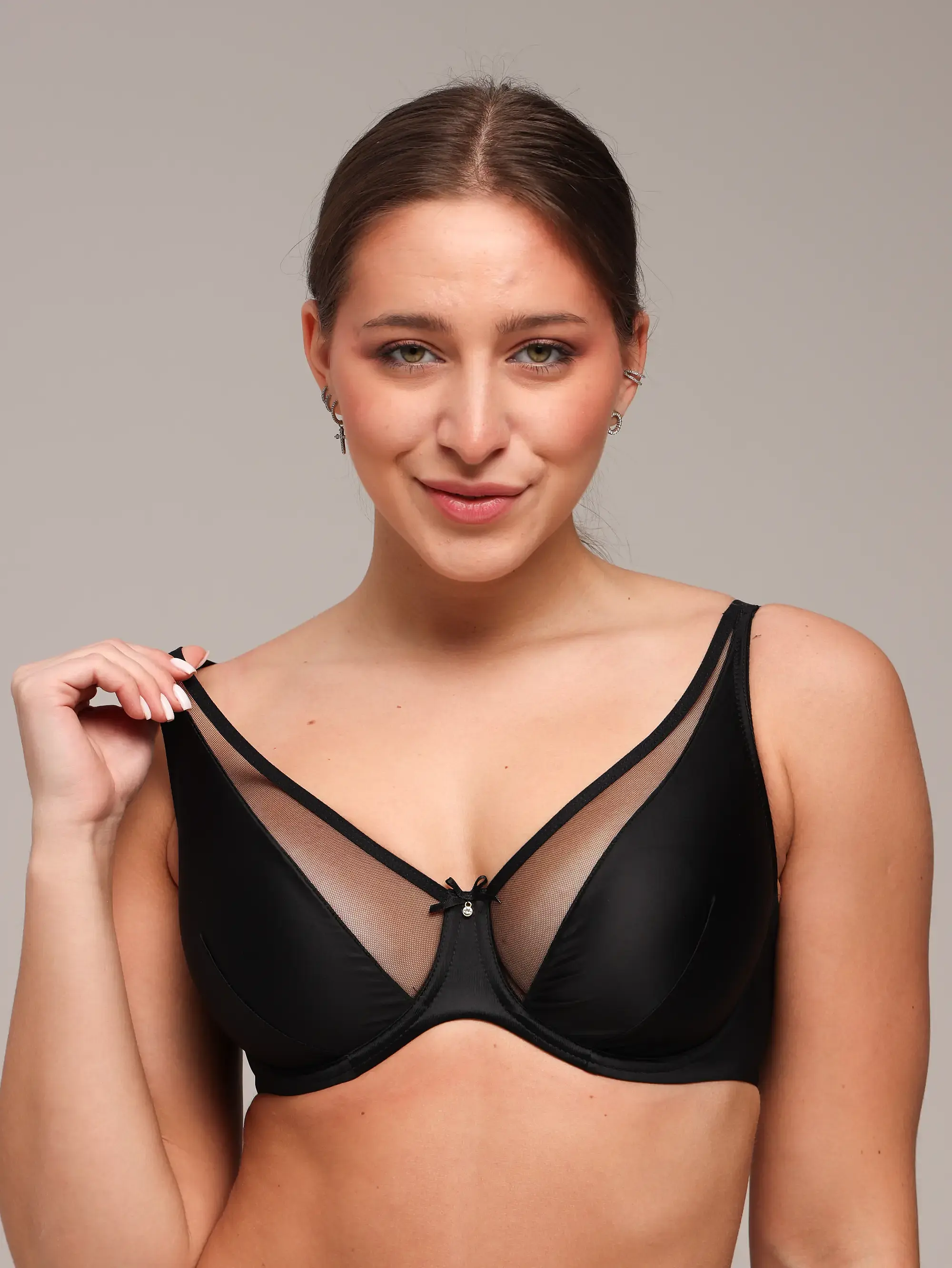 Deze beha van het Letse merk Zebra combineert luxe met comfort. De zachte beugel cups zijn gemaakt van gladde satijn, aangevuld met mesh inzetstukken die het model elegantie en lichtheid geven. Dit ontwerp biedt natuurlijke ondersteuning en een stijlvolle uitstraling, perfect voor zowel dagelijks gebruik als speciale gelegenheden.