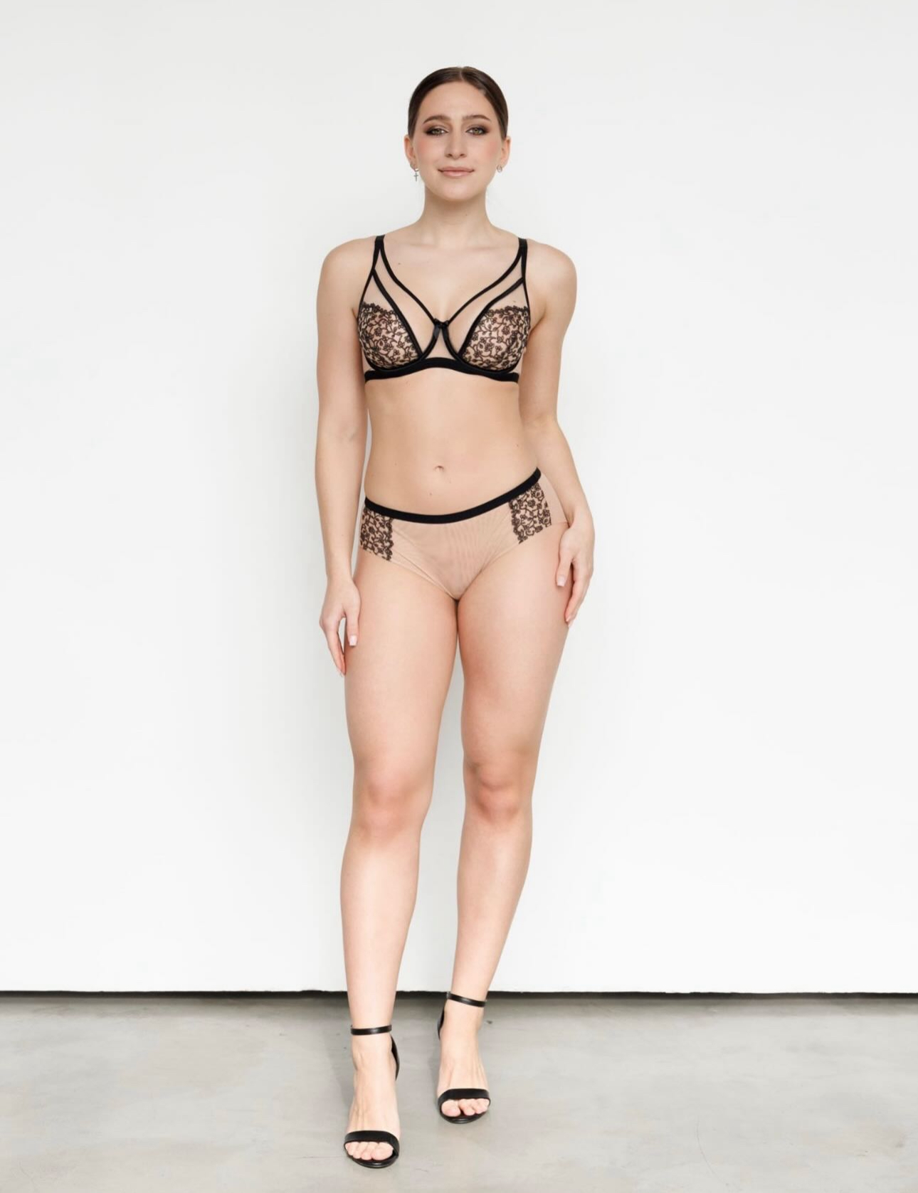 Deze beha van het merk Zebra betovert met een elegante combinatie van zwart borduurwerk op een huidkleurig netje en een delicaat strikje in het midden!