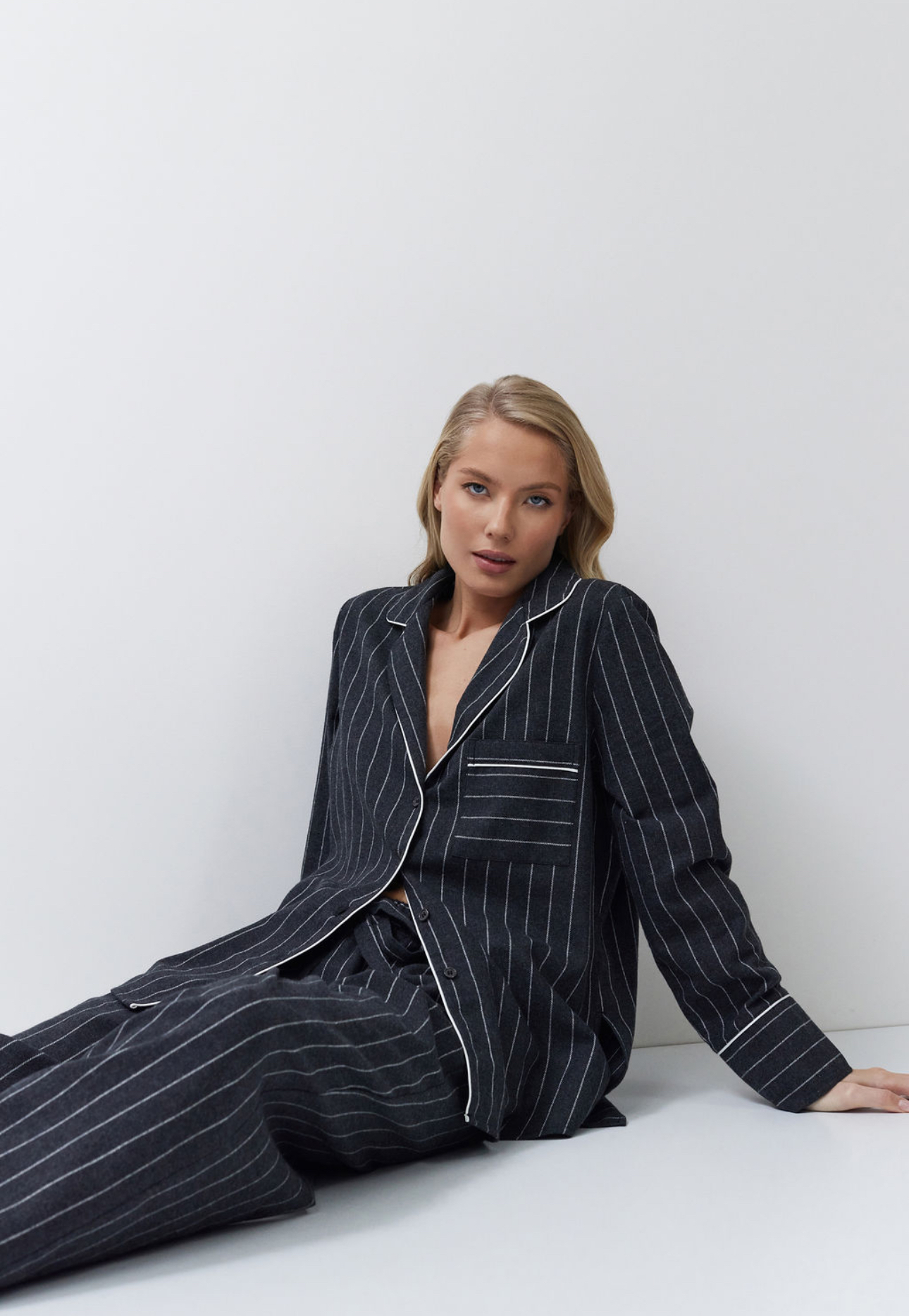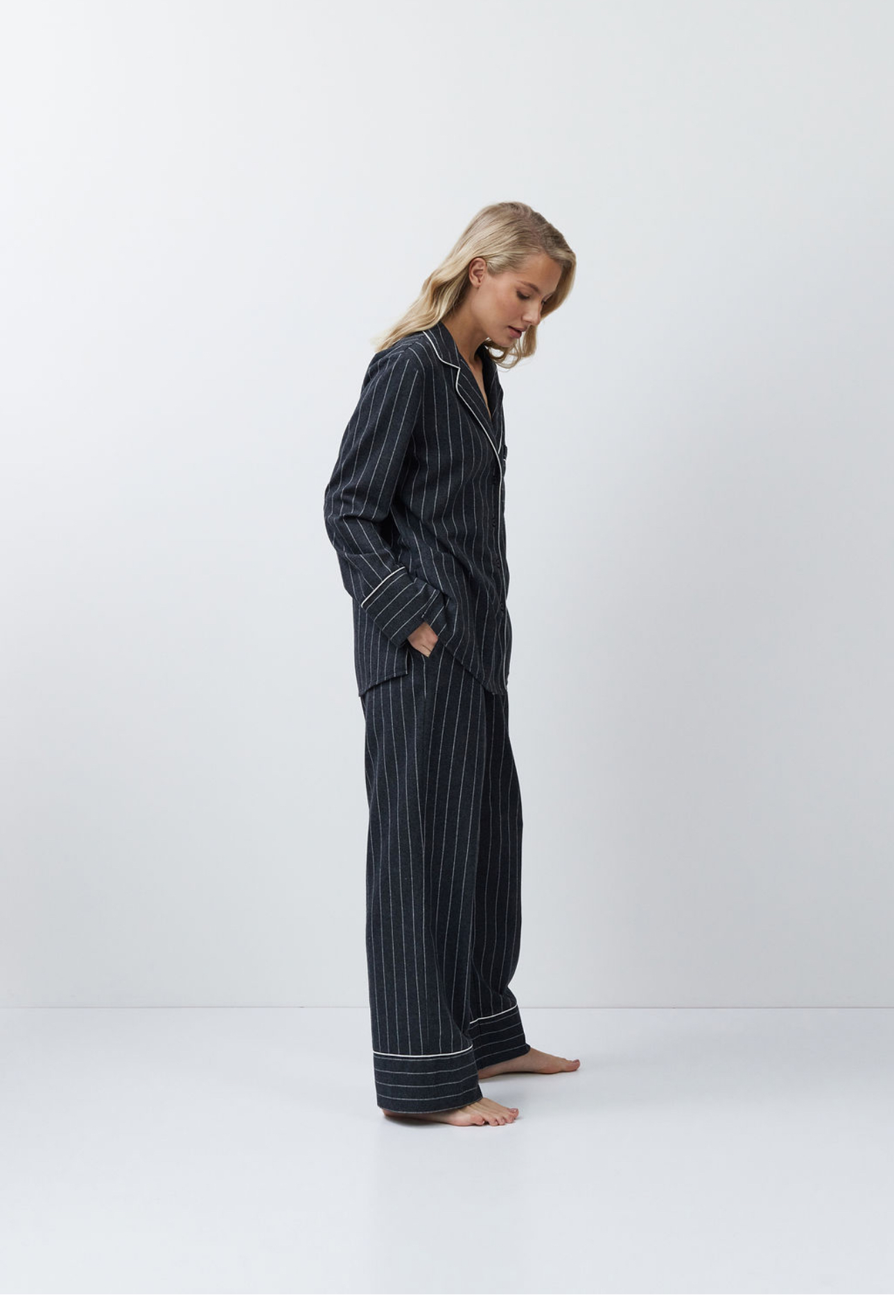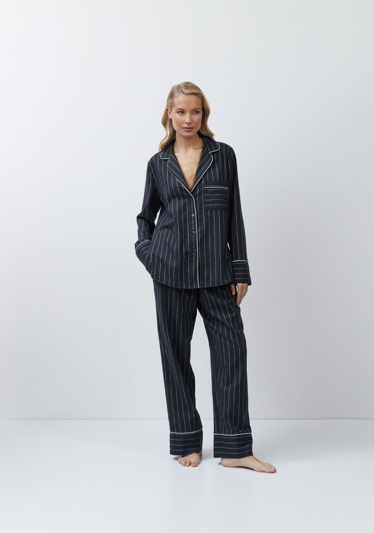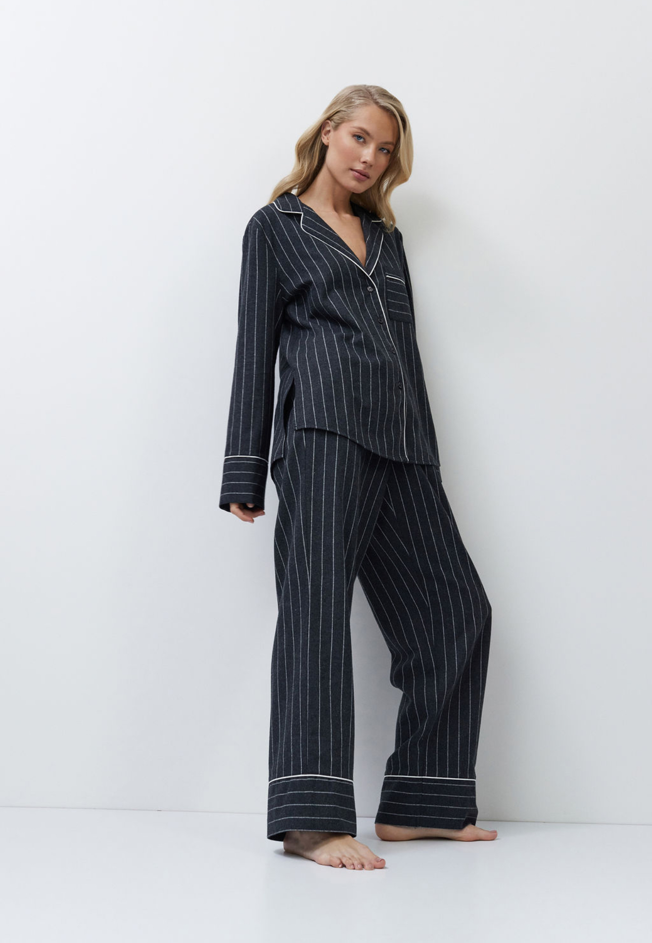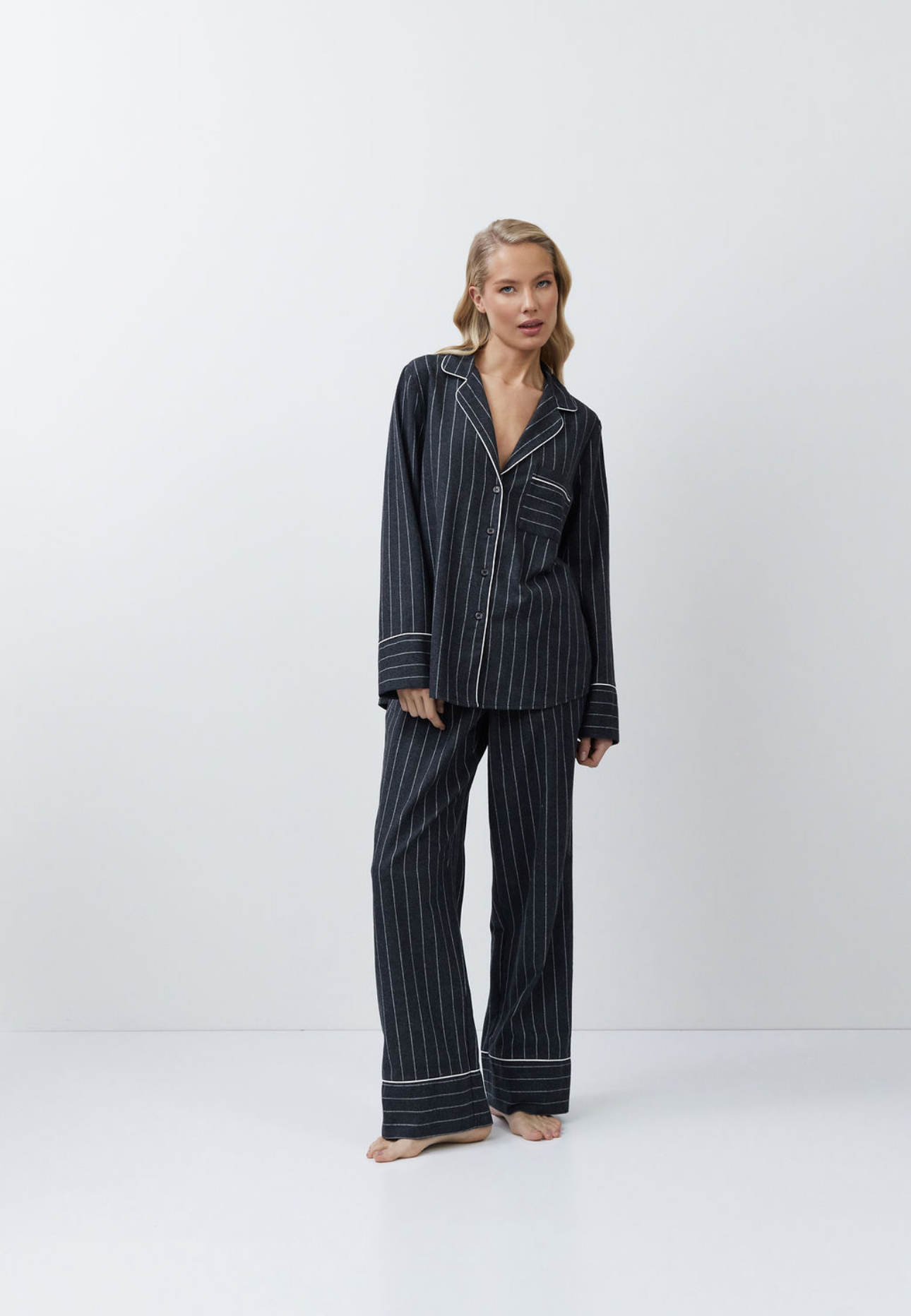 Pyjama set in donkergrijze strepen – een combinatie van elegantie en dagelijks comfort