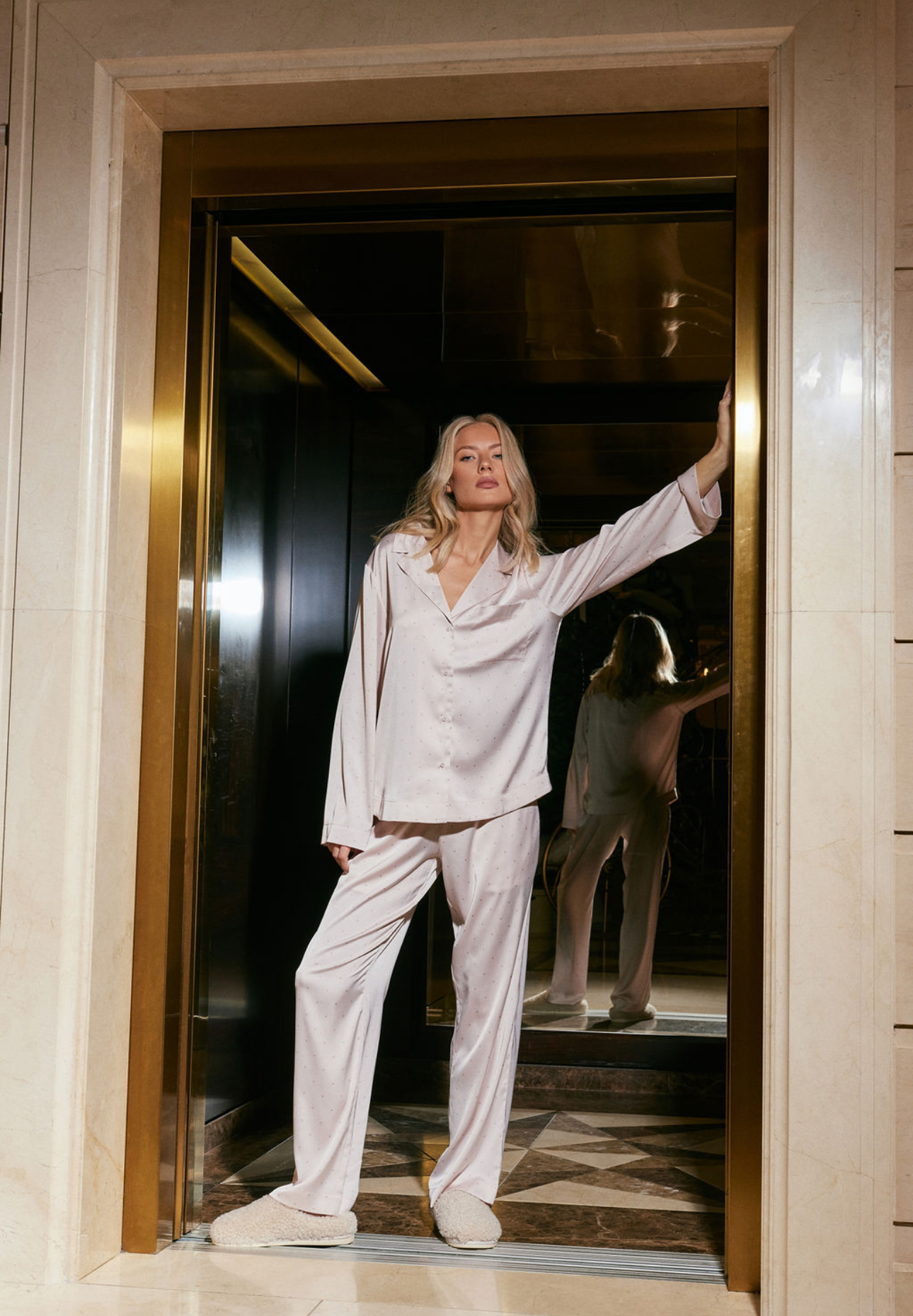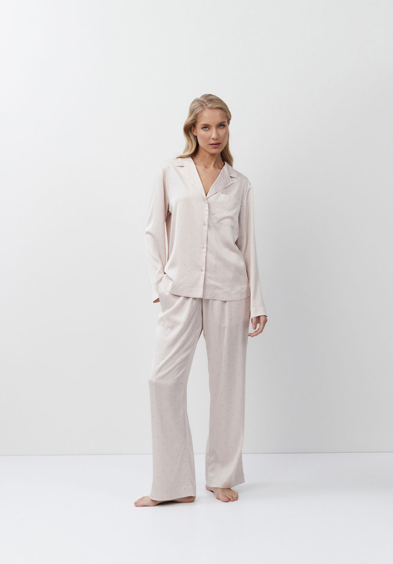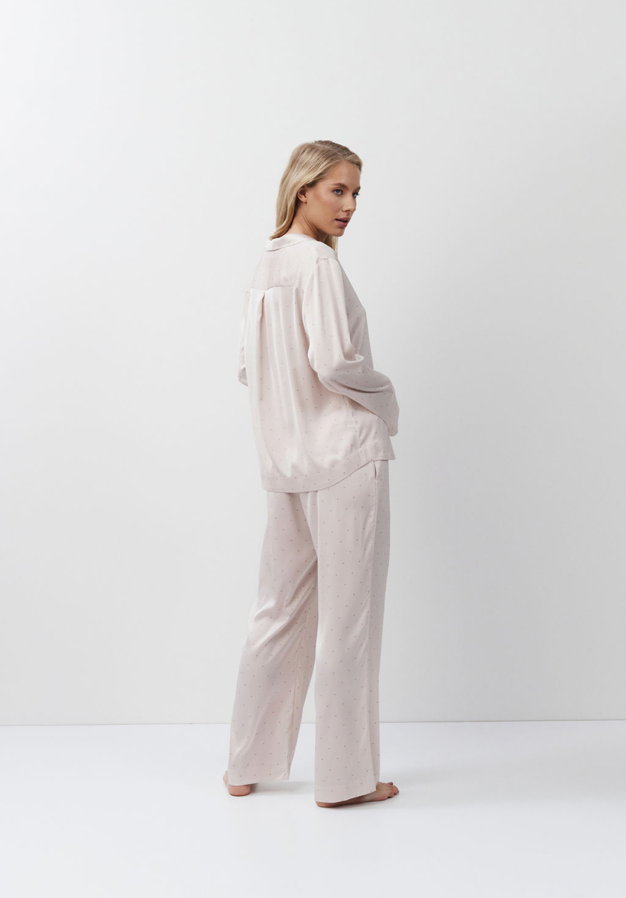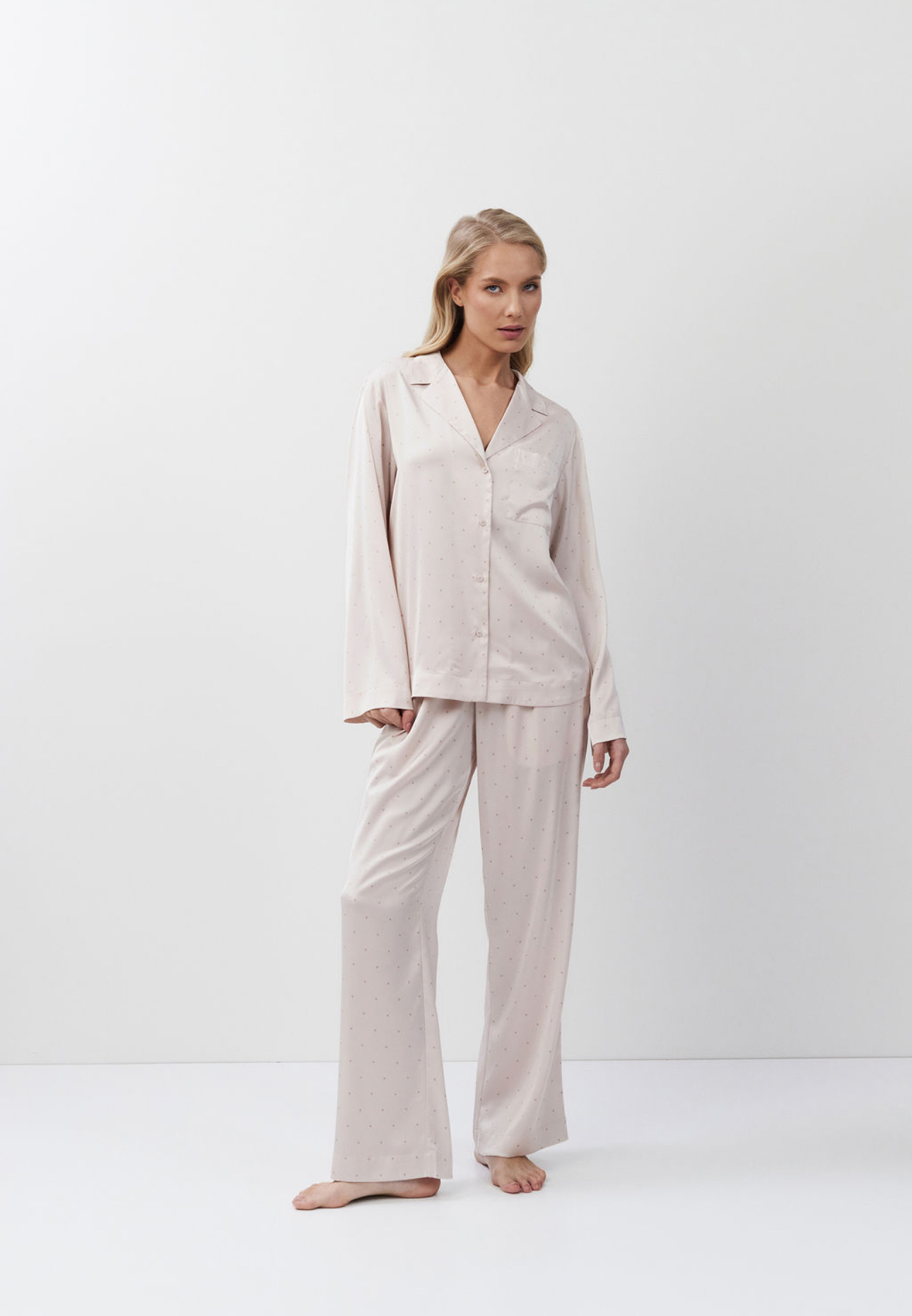 Luxueuze zachtroze satijnen pyjamaset met broek van Aruelle!