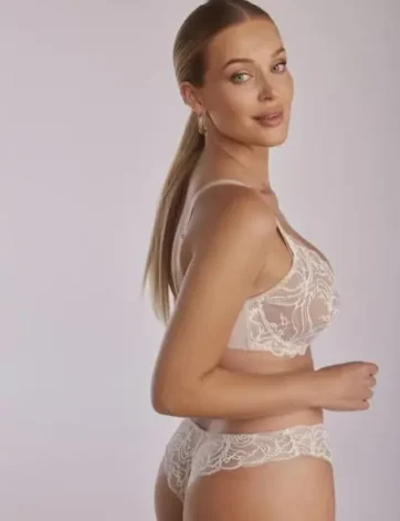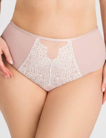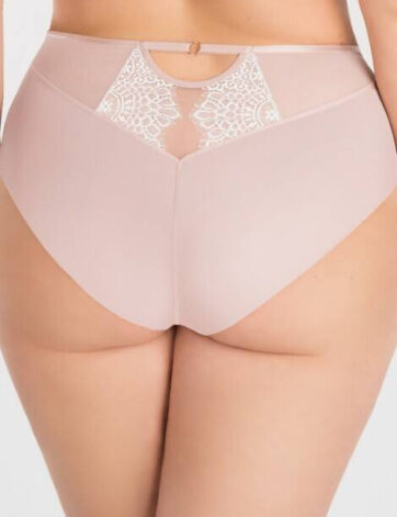 De achterkant van de slip is gemaakt van dubbele tule, wat zorgt voor een perfecte pasvorm en het model vrijwel onzichtbaar maakt onder kleding. De Braziliaanse snit accentueert de vrouwelijke rondingen op een effectieve manier en onthult de billen op een elegante en uiterst vrouwelijke wijze.