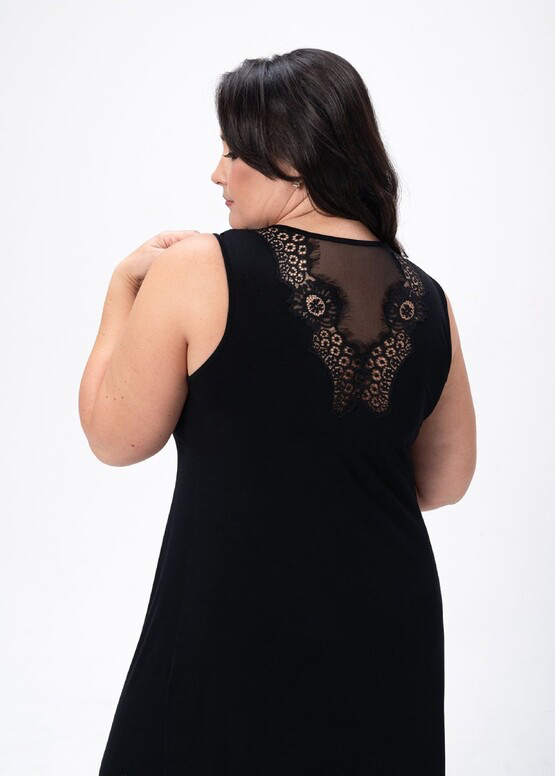 Het nachthemd van gemiddelde lengte tot de knie valt comfortabel om de figuur.