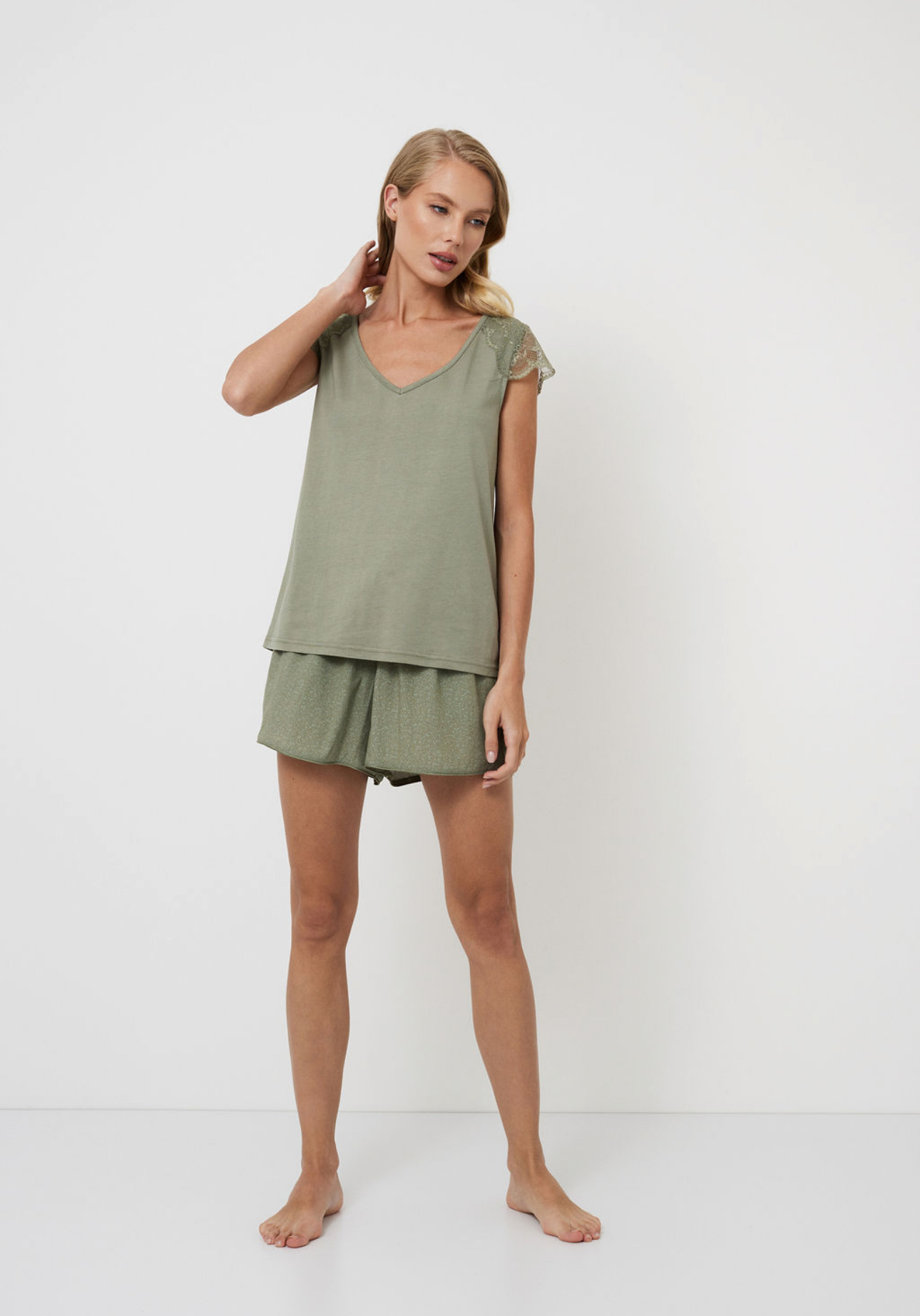 Wij presenteren de korte Odelia pyjama, waar elk detail een heerlijke verrassing is.