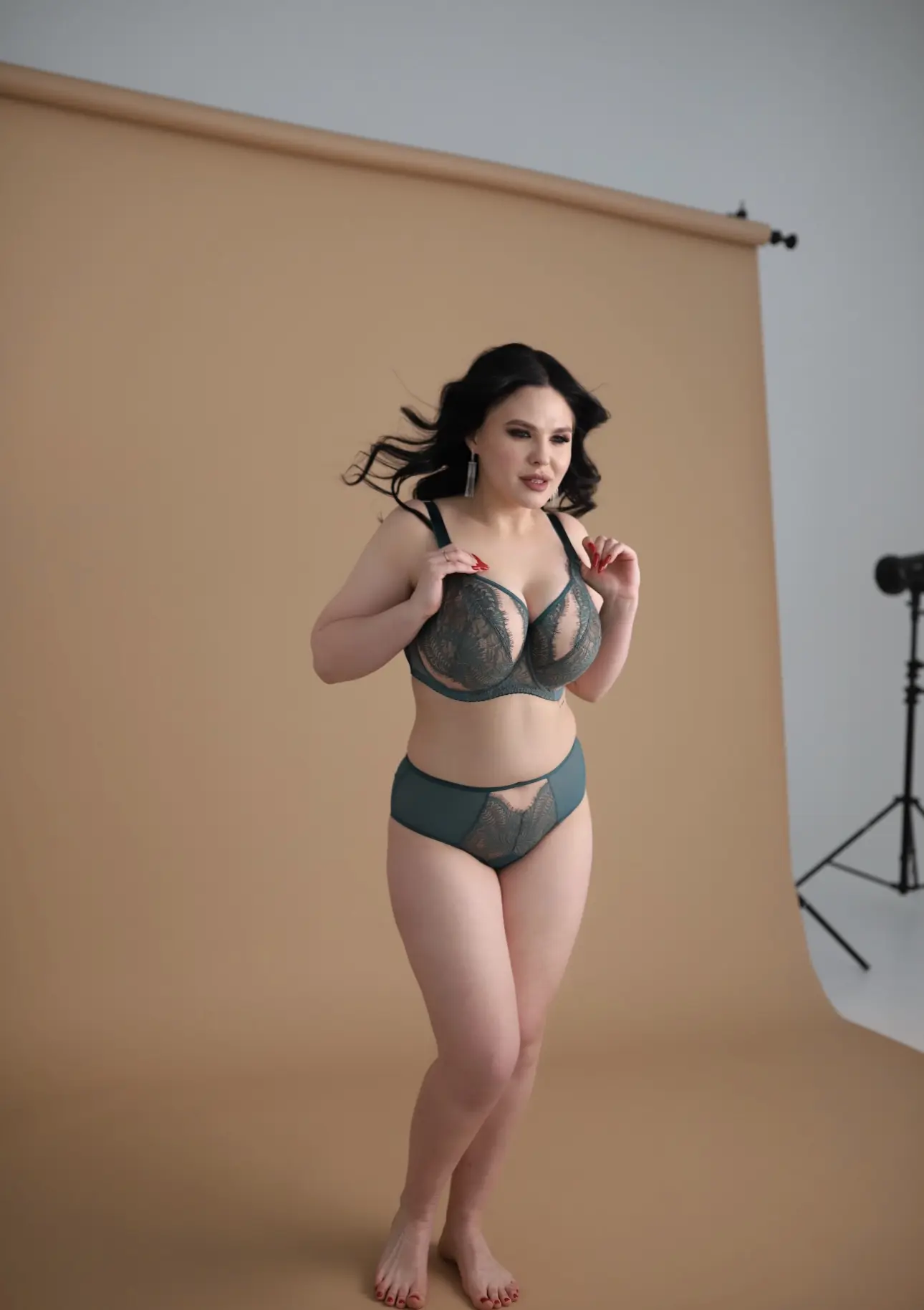 De zachte beha is ontworpen voor vrouwen met middelgrote en grote borsten. Zorgt voor een liftend effect en brengt de borsten naar binnen samen. De bovenrand van de cup is afgewerkt met een licht glanzend lint. Bovenop zit een extra laag elastisch kant die een driedimensionaal effect creëert. De achterkant is gemaakt van transparante lycra, wat zorgt voor een zeer goede pasvorm en ondersteuning. Zijbeugels voorkomen dat het materiaal oprolt. Afhankelijk van de maat twee- of drierijen haakjes met vierstaps omtrekregeling. Verstelbare bandjes in drie breedtes, niet afneembaar. Metalen elementen in lichtgouden kleur.